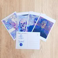 The postcards are made on DIN A6 300g semi-gloss cardboard.